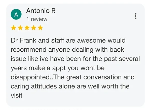 ** The testimonials presented on this site are individual experiences, reflecting real life experiences of those who have received the treatment presented here. However, they are individual results and results do vary. While the vast majority of our patients do experience reduced pain and improved physical condition from treatment, we do not claim that every patient will experience these improved conditions. Additionally, these testimonials are not intended to make claims that these products can be used to diagnose, treat, cure, mitigate or prevent any disease. These claims have not been evaluated by the FDA.