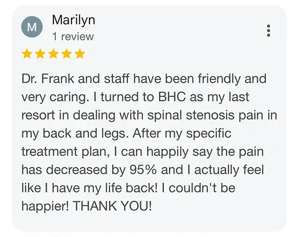 ** The testimonials presented on this site are individual experiences, reflecting real life experiences of those who have received the treatment presented here. However, they are individual results and results do vary. While the vast majority of our patients do experience reduced pain and improved physical condition from treatment, we do not claim that every patient will experience these improved conditions. Additionally, these testimonials are not intended to make claims that these products can be used to diagnose, treat, cure, mitigate or prevent any disease. These claims have not been evaluated by the FDA.